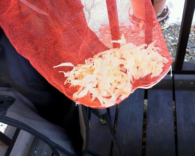 右端水色の吊り下げ網は、細身の輪切り大根で「凍み大根」を作っています。