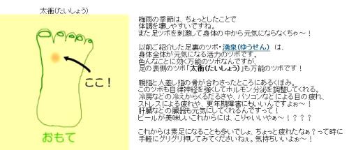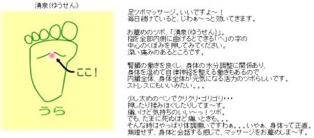 お薦めのツボ、「湧泉(ゆうせん)」。
