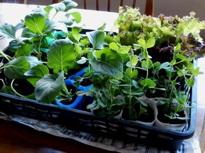 苗はレタス、キャベツ、ブロッコリー、スナップエンドウ