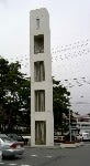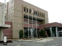 写真中:役場構内、出入口近くの消防ホース乾燥エリア(役場標識塔?)