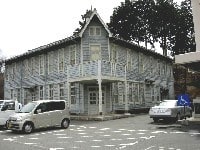 写真右:敷地内で保存の役目を終えた旧役場。なかなか味のある建物だったようだ