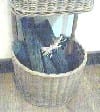 木箱につめて屋根裏に、30年前に編んだ籐篭に入れてトイレに