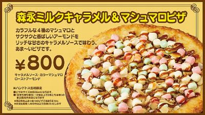 キャラメル味のソースに、4色のマシュマロとアーモンドをトッピングだって!