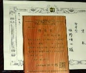 写真右:知事の名前で賞状と盾が