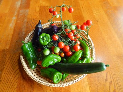 ミニミニトマトと切り戻しで大繁盛のナスと、狂ったように大きくなるピーマンをまだ収穫しています。