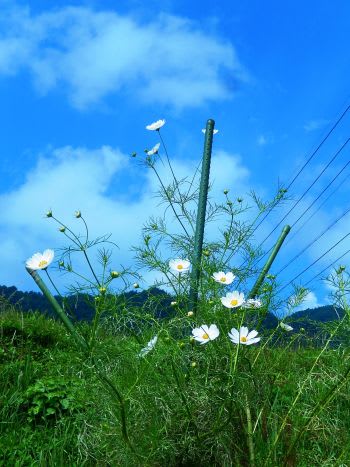コスモスが秋を告げる。今年は赤とんぼが少ないようだ。