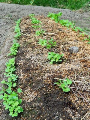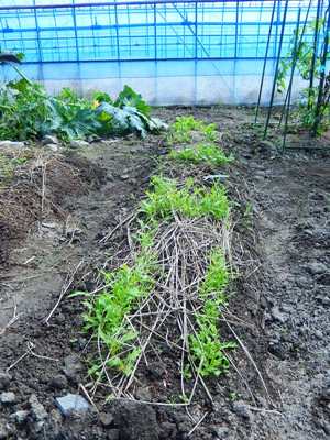 脇の、詰まった行列はダイコンの残り種を筋播きして、カイワレ作り