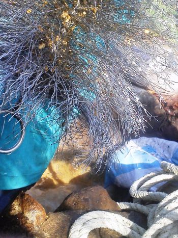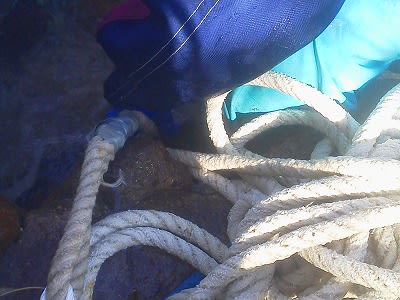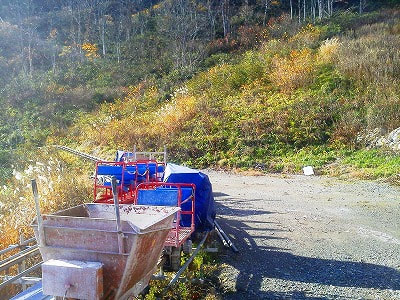 もう一人の作業員さんが1キロ上からおもりをつけたロープを流し、ここで引き上げると
