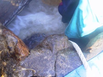 ブラシが現れ、引湯管に付着している硫黄塊の清掃だった。