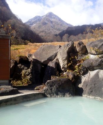 燕温泉登山口近くの「黄金の湯」に浸かる。温度は低いが有名な露天なのでゆっくり楽しんだ