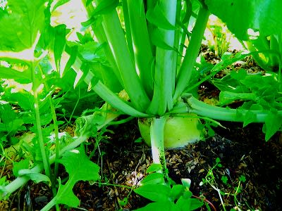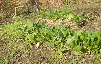 夏から継続の小松菜と水菜。とり散らかった畑にうんざり感。