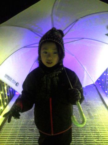 その夜は、あづみの公園大町松川の素朴なイルミネーションを見学。