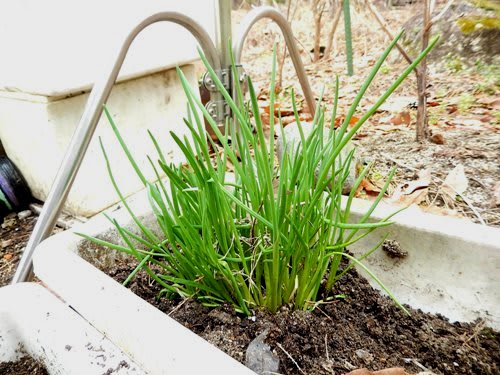 昨年アサツキの株を庭のプランターにも移植したものが越冬した