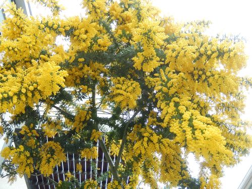過日、東京/下北沢の路地裏のお宅に大きなミモザの木発見