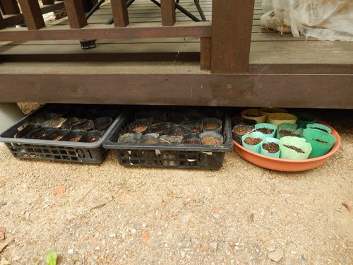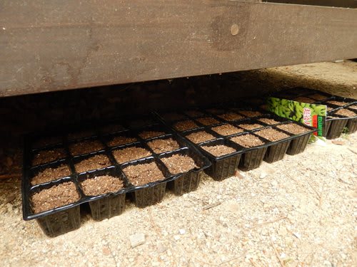 ポットで芽出しなら自宅の庭の涼しいところでできるので苦肉の策なんですよ。