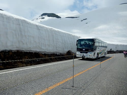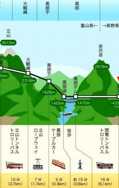 ケーブルカーやロープウエイを乗り継ぎ、扇沢駅から室堂まで約2時間