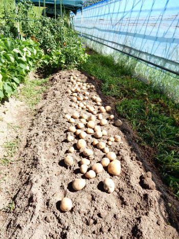 手前が男爵・・・種いも10個から、小粒をはずして約50個