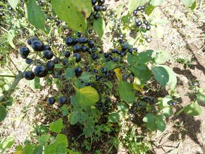 ハックルベリー。毎年採取する種から育てている方から頂いた苗が、大量の実をつけた。