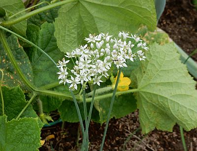 コンパニオンプランツとしてキュウリに寄り添って活躍してくれたニラにも、花が