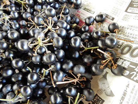 頂いたガーデンハックルベリーの実が、たわわに熟したので収穫してジャムを作った。、
