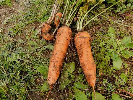 畑の近くを散歩されるおばあさんが「よく出来たせぇー、ニンジンは難しいで」と、たった2本をほめていただきました。