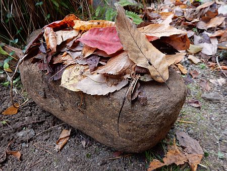 砂と石ばかりの土に培養土と腐葉土を施す。