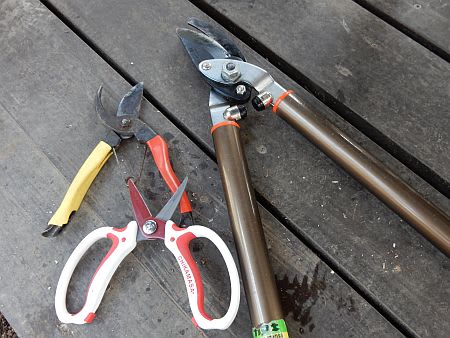 枝切りバサミや使いやすい園芸バサミを駆使して励んだ。