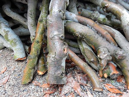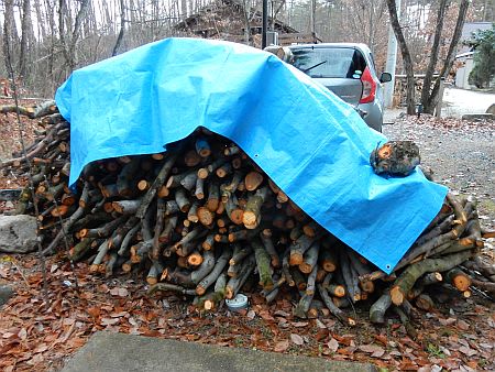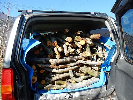 『30年かな?ご苦労さん』と話しかけながら、カット済みの山積みされた薪材を車に集める。