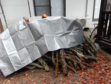 庭木のミズナラ伐採で得たぶっとい幹や枝もあるので、充実の冬仕事となる。