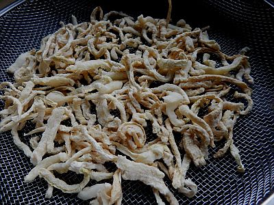 内1本を、6ミリ角の長さ5センチにカットして、3段干し網で干しダイコンの出来上がり