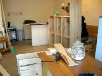 写真左:先日覗いた駅前の「ひつじ屋」さんは店内改装中だった