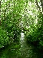 写真中:基地裏の小川。絶景 ぜっけい ゼッケイ(せせらぎの音が聞こえそう)