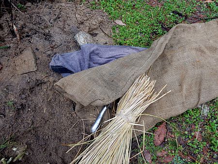 これら稲わらとドンゴロス麻袋もかぶせ、古いバスタオルで仕上げた