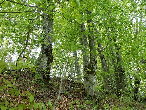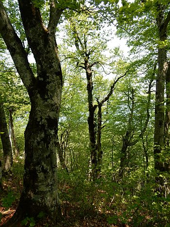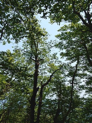 北面の頂上近くには、かつてはもっとたくさんあったと伝えられているブナの原生林が残されていて、やはり四村に水を供給する重要な水源の山であることは、今も昔も変わってはいないのだろう。