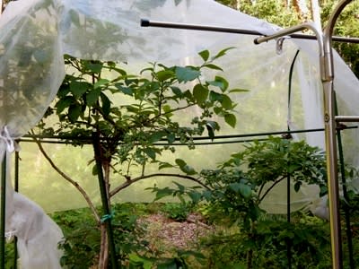 防鳥のため寒冷紗をかけているが、少しみっともない。