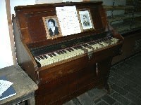 写真左:相馬黒光の嫁入り道具のオルガンで長女俊子の入学時に寄贈された。机は当時のもの