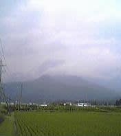 写真左:松川村ではどこからでも有明山が見える