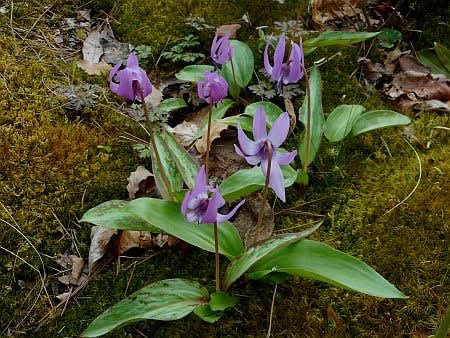 カタクリはあちらこちら離れたところにも咲いて、ずいぶん株数が増えた