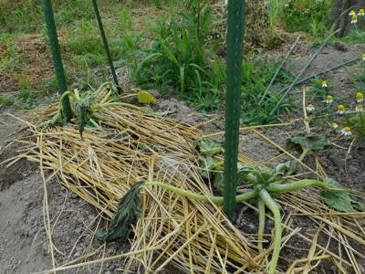 ズッキーニは抜いて、別に畝を作って移植したが