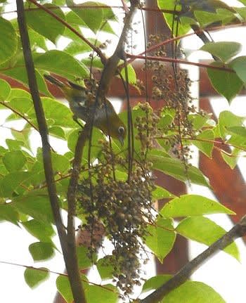メジロは一般的には、桜の花や蜜を好むと思っていたがウルシの実も好むとは。