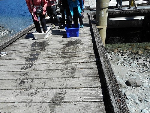 さあ下船。消毒をして上陸します。