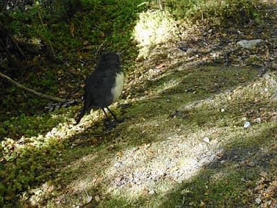 樹林帯では、しばしば見かけるブッシュロビンという鳥が人なつっこい。