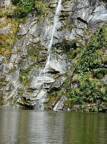 左手山側に小さい滝(雪どけ水でしょう)が見え、