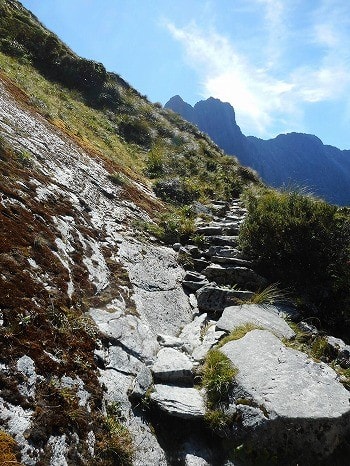ママさんは1日目の岩場で捻挫をし、ガイドからぐるぐる巻きのテーピングと