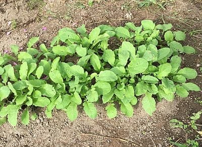 9月初めに種を撒いた大根の葉、