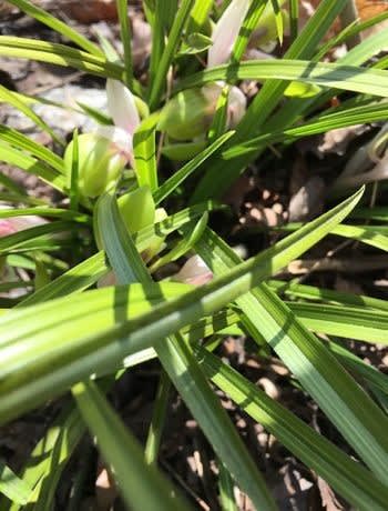 例年より1ケ月遅れのシュンラン。確か移住後初めて見つけた花です。