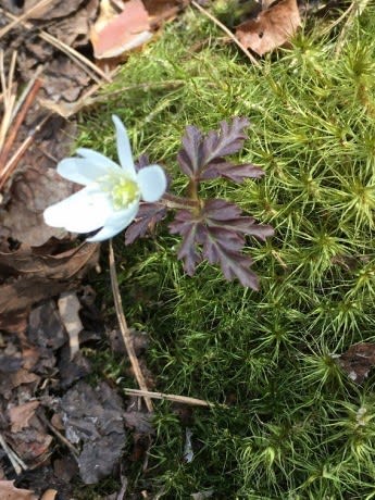 お初の花はイチリンソウですが、ひょっとしてキクザキイチゲかもしれない。ご近所に圧倒的に花に詳しい女性がおられます。もう少し様子を見てみる。