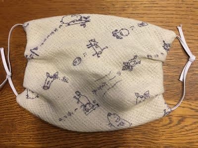 そうこうしている間に夏用マスクができました。薄手のタオルをバイヤス仕立てにしたので、鼻へも顎へも具合よくフィットします。