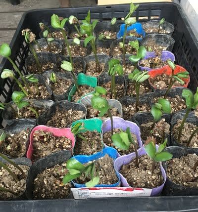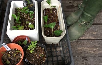 キンカンとビワの種を植えたところ芽が出てきたので見守り中です。ついでに友人宅から頂いたアジサイを芽挿ししています。