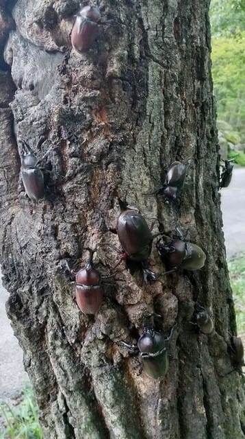 カブトムシがこんなに密でいるのは初めて見ました。キュウリは長雨の影響で出来が悪いとプロも言ってました。今後を期待して秋キュウリへ。雨にも負けず・・・